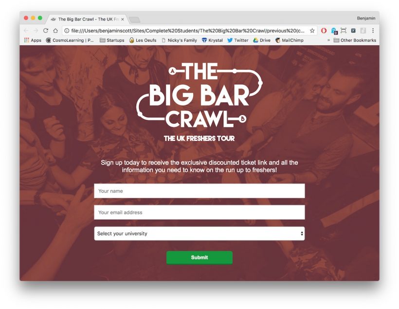 The Big Bar Crawl has been going for 2 years now with over 50,000 students joining in, running in 25+ cities.